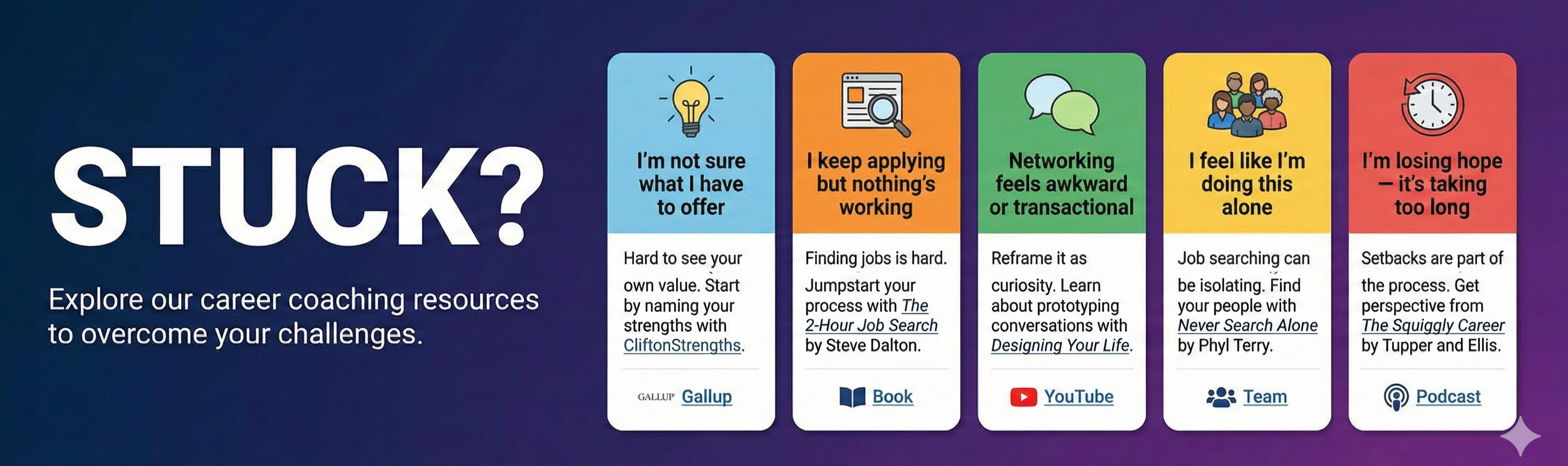 "Networking feels awkward or transactional" - Nobody wants to feel like they're using people. You could reframe it as curiosity — having conversations to learn, not to ask for favours. Designing Your Life by Burnett and Evans is a good place to start to learn about prototyping conversations.